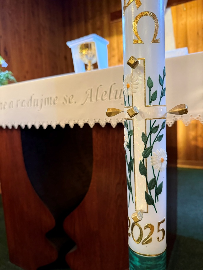 Na konci bohoslužeb bratr farář požehnal velikonoční pokrmy a na závěr jsme zpívali hymnus “Buď Tobě sláva, jenž jsi z mrtvých vstal.”