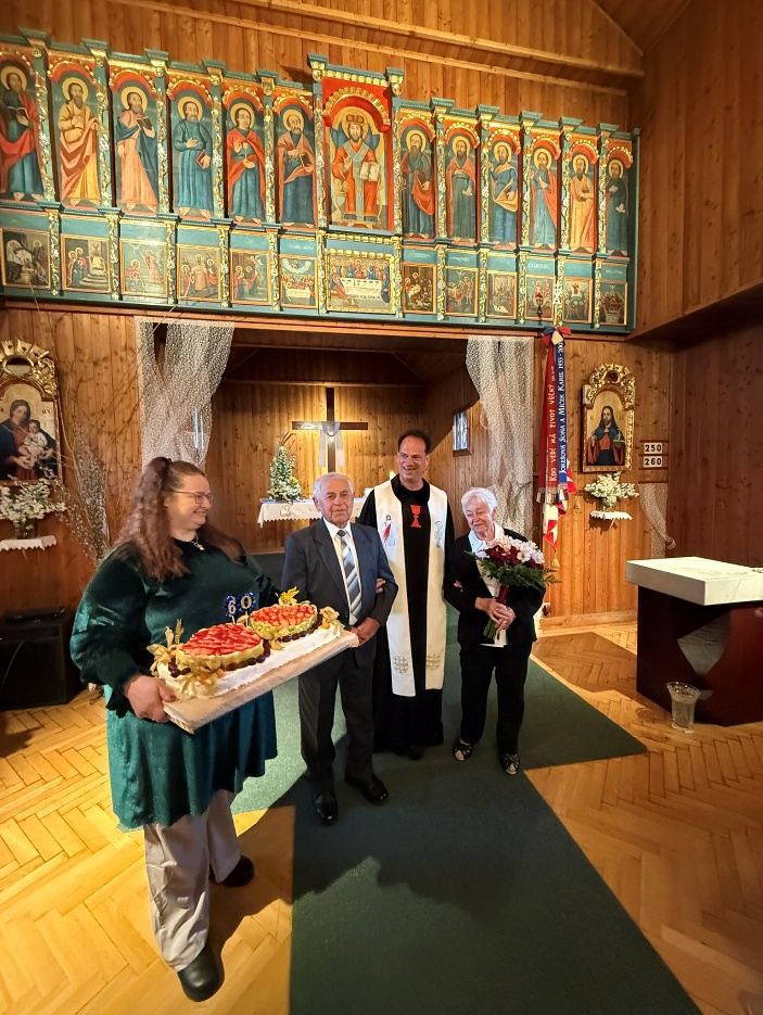 Při dnešních bohoslužbách jsme prožili krásnou událost. Věrní účastníci bohoslužeb Alenka a Vilém Kuncovi děkovali za 60 let společné cesty životem.