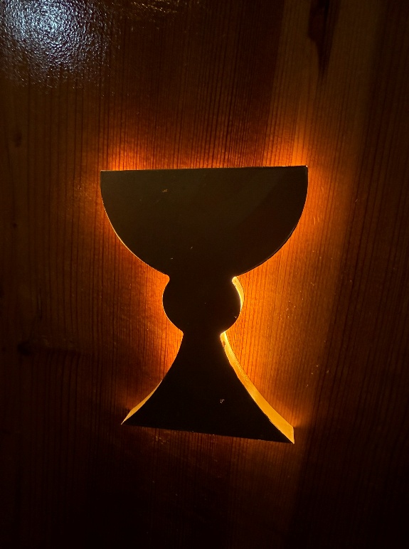 Kalich v červené barvě býval nad vchodem do našeho kostela. Bohužel jej zloději odcizili a po 10. let je místo prázdné. Nyní se můžeme radovat s díla, které je citlivě sladěné s dalšími kovářskými prvky na našem chrámu.